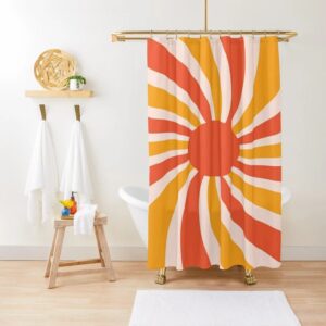 Boho Mid-Century Sunset Abstract Shower Curtain, Eco-Friendly Waterproof Home Decor