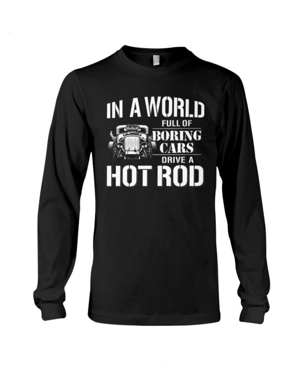 Hot Rod T Shirts Hoodie Sweatshirt with Quote In A World Full of Boring Cars for Hot Rod Lovers